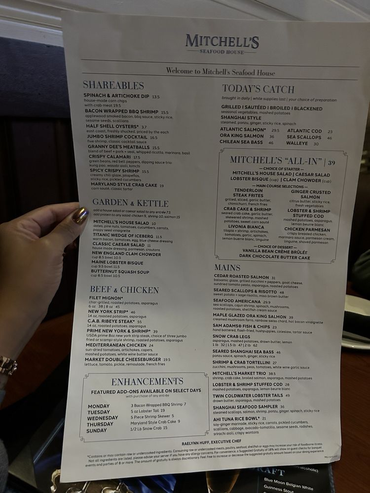 Introducing Mitchell’s Fish Market – a seafood bar located in Livonia, MI. Offering a casual yet classy atmosphere, it caters to groups, kids, and dinner outings. Known for its seafood selection, the menu features appetizers like Bacon Wrapped BBQ Shrimp, Chesapeake Bay Crab Cakes, and Jumbo Shrimp Cocktail. Choose your style of preparation from cedar-plank, ginger, hoisin, or jerk options. Customers have praised the food quality and drinks, highlighting the Maine Lobster Bisque and Dynamic Duo entree. While slightly on the pricier side, the value is justified by the fresh ingredients and unique presentation. Additionally, happy hour specials provide an opportunity to sample a variety of dishes at reasonable prices. Overall, Mitchell’s Fish Market stands out for its seafood offerings, attentive service, and welcoming ambiance.